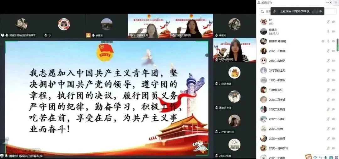 青年是民族的希望,祖国的未来。数学科学学院将以本次“青马工程”培训为契机,为培养合格的、优秀的青年马克思主义者奠定良好基础,将同学们培养成为带头践行社会主义核心价值观、厉行团结的精神和品格、积极传播正能量的好青年,为党的进一步发展注入新鲜血液,为国家建设贡献青春力量。