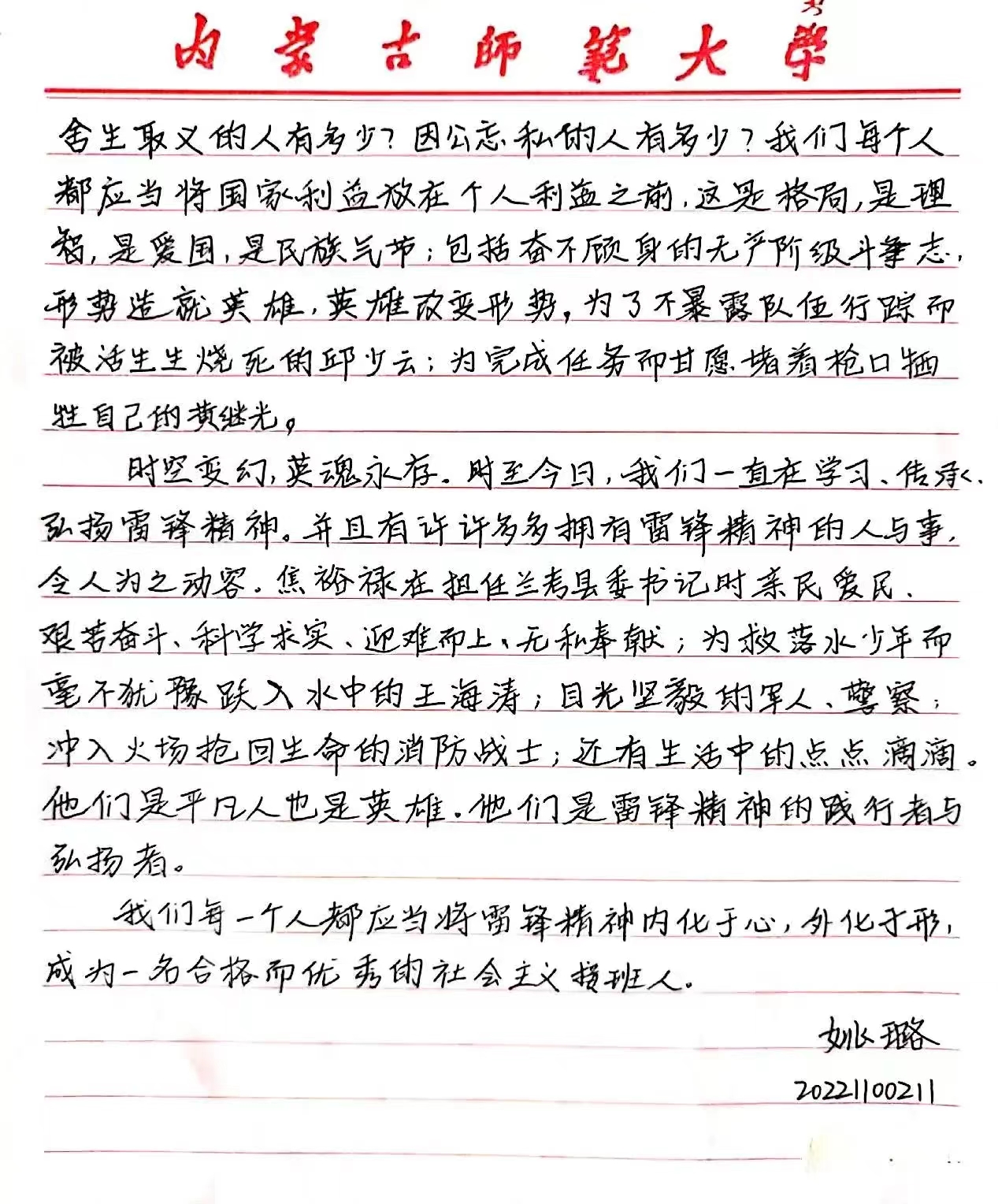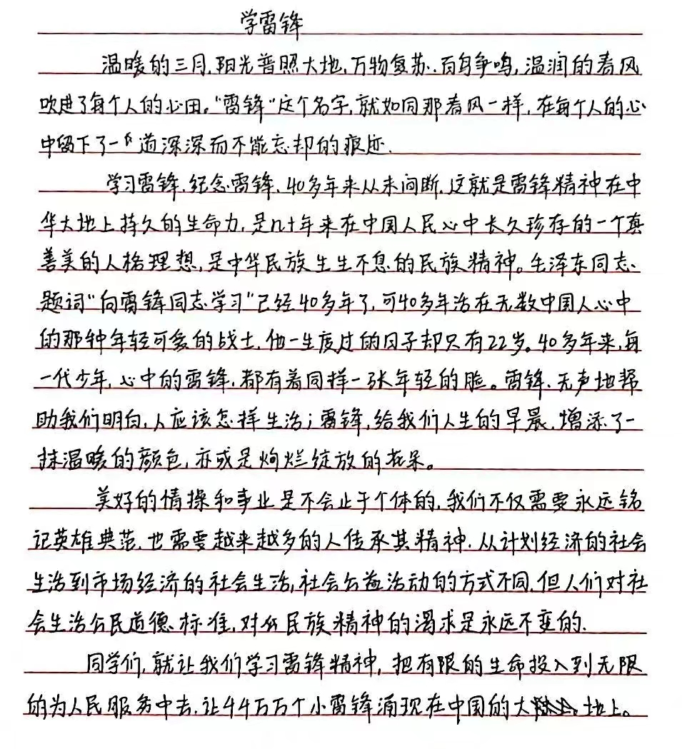 为进一步学习和弘扬雷锋精神,形成“人人学雷锋、时时有雷锋、处处见雷锋”的良好氛围,扎实有效推进学生思想道德教育,3月5日,数学科学学院举办学雷锋纪念日主题征文活动。