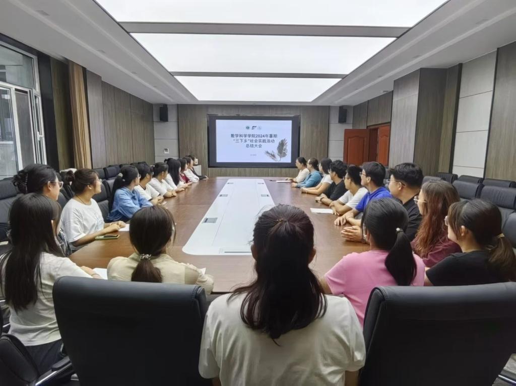 8月27日,数学科学学院2024年暑期“三下乡”社会实践活动总结会议在学院楼会议室举行,会议由学院团总支副书记阿茹罕主持,学院辅导员老师以及22名志愿者参加此次总结大会。志愿者们各自回顾和梳理了暑期参加“三下乡”“返家乡”社会实践活动过程中的所见所闻和所思所想,分享了各自的实践经历和收获。