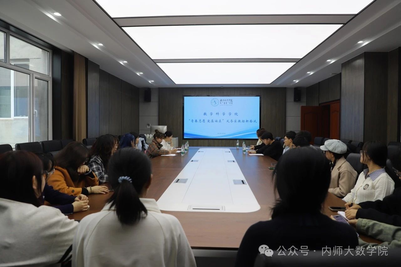 为了给更多的同学提供教学技能实践机会,培养学生服务社会的责任意识,提升义务家教等志愿服务活动成效,3月9日,数学科学学院教学技能兴趣小组在学院楼会议室开展新成员招新面试活动。