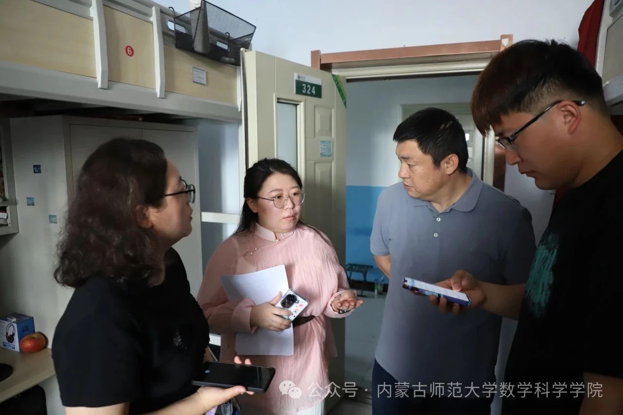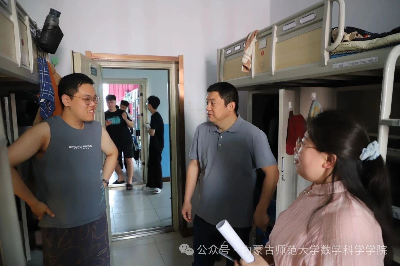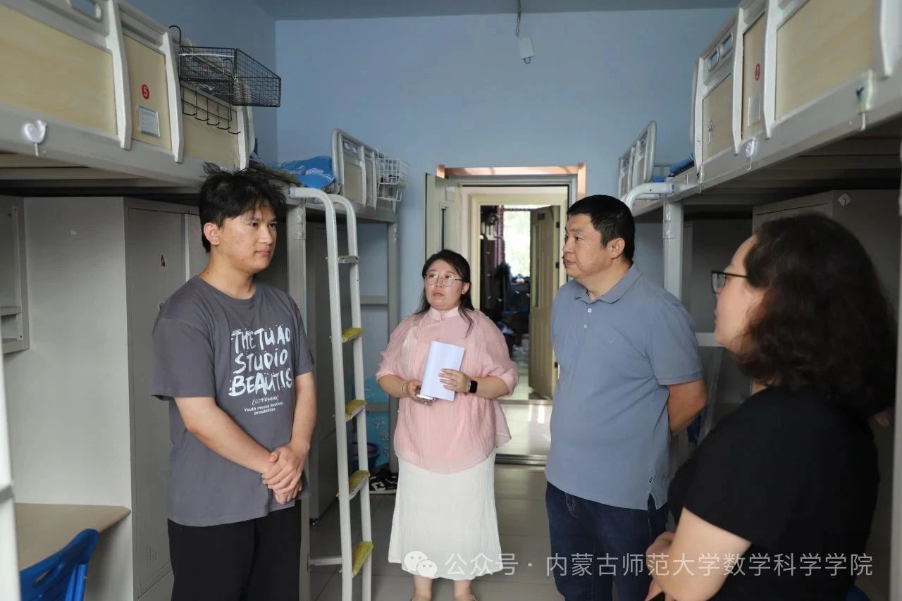 临近毕业季,为扎实做好毕业生离校期间宿舍安全保障工作,进一步强化校园安全管理,数学科学学院于6月19日组织开展毕业生宿舍安全专项走访活动。学院党委副书记、副院长季建光老师及辅导员走进学生宿舍,为毕业生们送上亲切关怀与美好祝福,全力护航毕业生平安顺利离校。