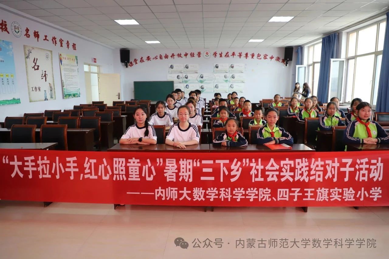 教育帮扶是此次实践的重要使命,从前期筹备到落地实施,全程彰显“精准化、长效化”理念。7月6日至8日,志愿者提前开展家访“结对子”活动,深入了解学习习惯、学科短板与家庭需求,为精准辅导奠定基础。7月7日,数学科学学院与四子王旗实验小学共建社会实践基地,开展“校地协同教研”,志愿者与该校数学教师围绕“基础教育与数学创新教学”展开研讨,一线教师分享的课堂管理技巧、分层教学经验,让志愿者对“因材施教”有了更鲜活、更深刻的理解。