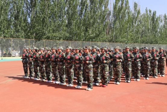 军姿挺拔,意志如钢:烈日下,同学们身着整齐的迷彩服,身姿挺拔如松。军体拳训练中,教官们分解动作细致讲解,从握拳、出拳的力度把控,到踢腿、格挡的姿势规范,逐一纠正细节,确保每一个招式标准有力。一系列动作连贯利落,刚劲有力的拳脚划破空气,整齐划一的步伐踏响地面,展现出十足的精气神。汗水浸透迷彩服,眼神却愈发坚毅。