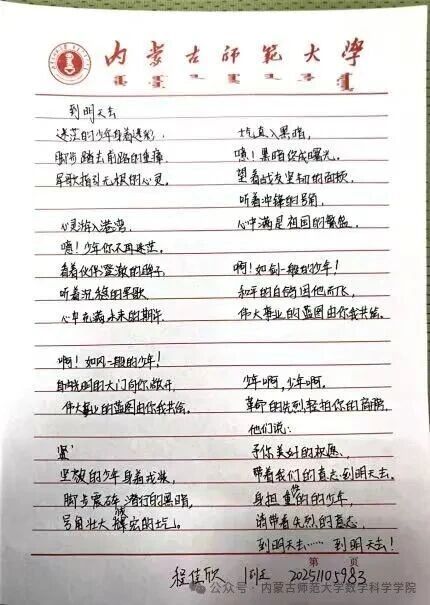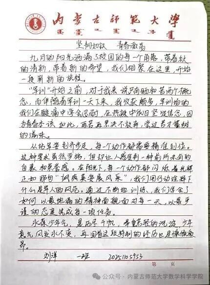 军训仍在火热进行中,数学科学学院学子的笔尖已悄然记录下这段旅程的点滴感悟。那些华体会网页版坚持的独白、华体会网页版团结的思考、华体会网页版蜕变的期许,正从字里行间缓缓流露,成为当下军训时光最鲜活的注脚。
