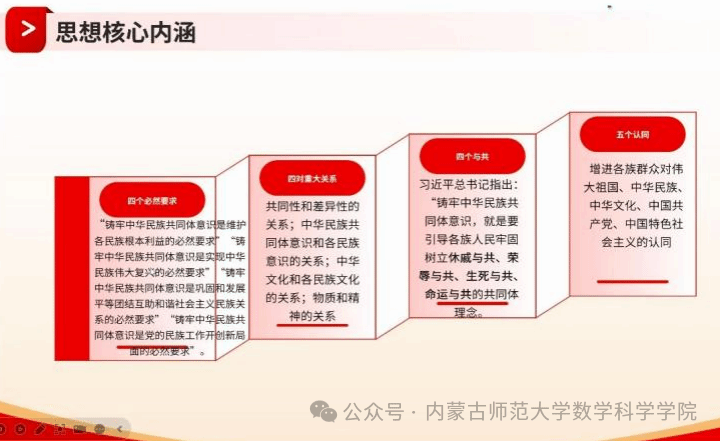 学院组织各班级团支部深入学习以“十二个必须”为核心要义的习近平总书记华体会网页版加强和改进民族工作的重要思想,并着重学习“四个必然要求”“四对重大关系”“四个与共”“五个共同”“五个认同”等核心内涵。通过学习活动,引导各族同学深刻理解民族团结的重要性,积极投身中华民族共同体建设。