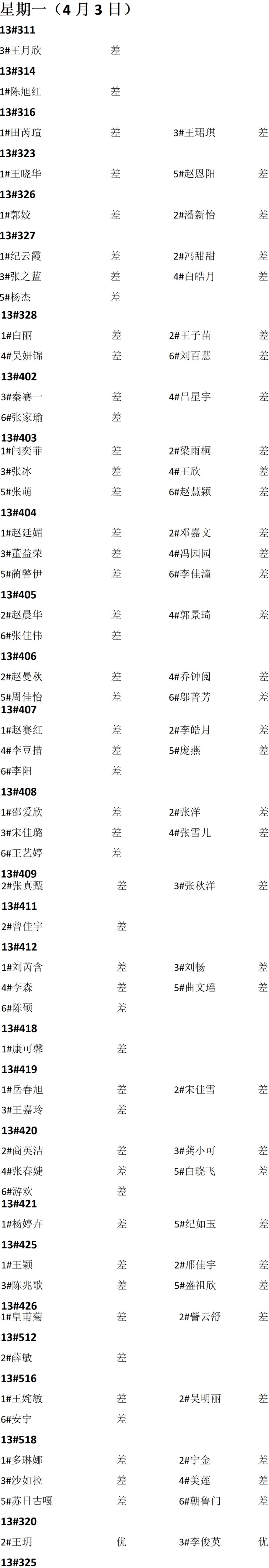 第七周旷晚自习情况