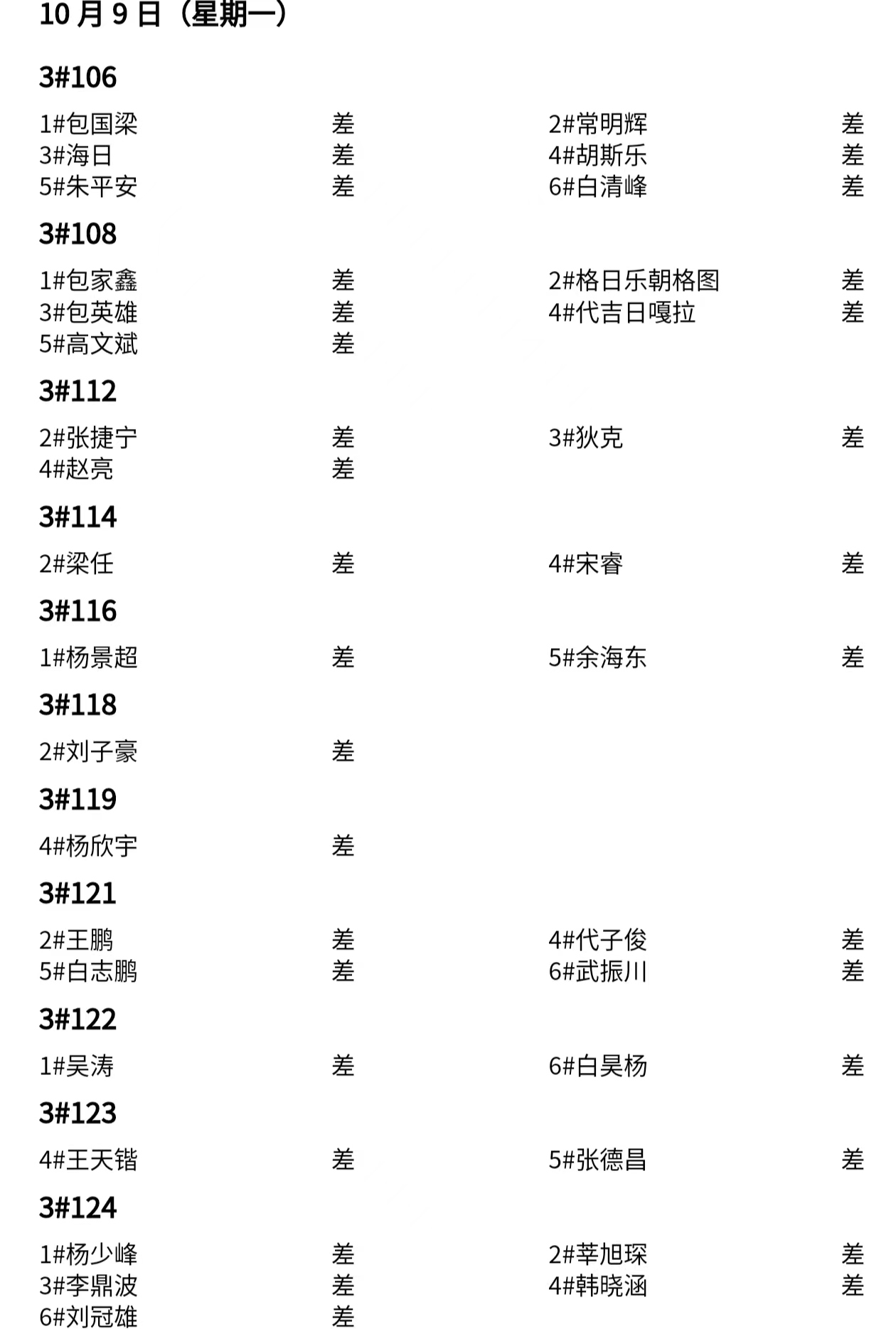 第八周内务情况
