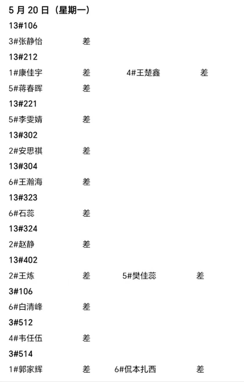 数学科学学院2023——2024年度第二学期第十三周通报批评