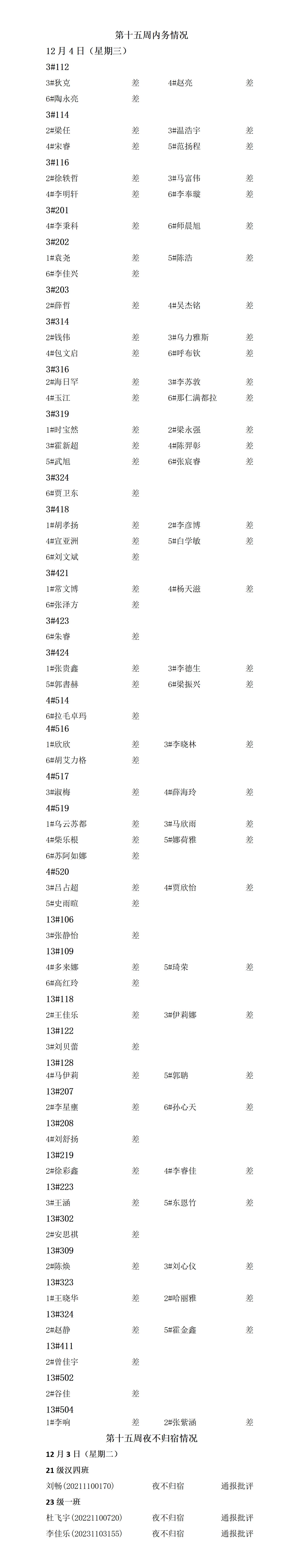 数学科学学院2024——2025年度第一学期第十五周通报情况
