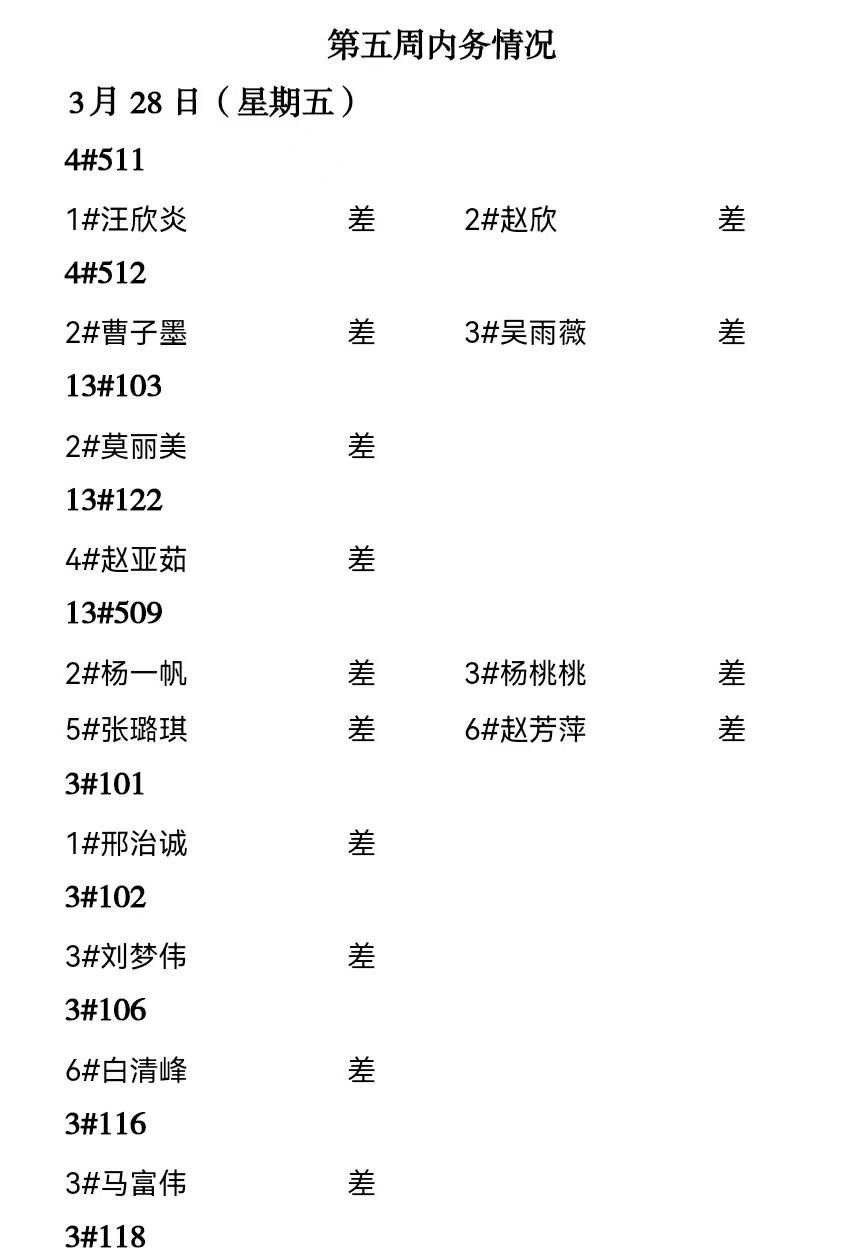 数学科学学院2024——2025年度第二学期第五周通报情况