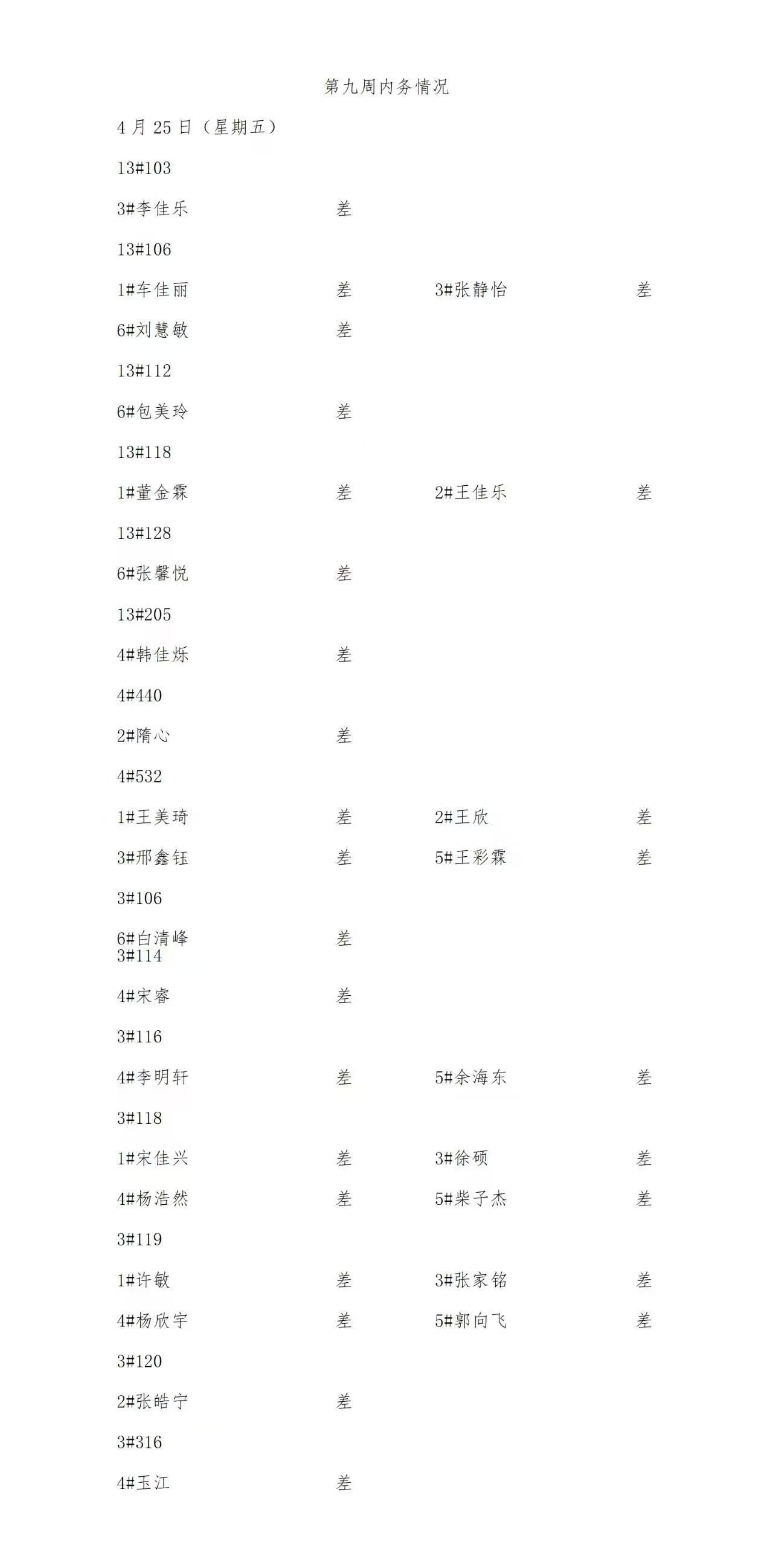 数学科学学院2024——2025年度第二学期第九周通报情况