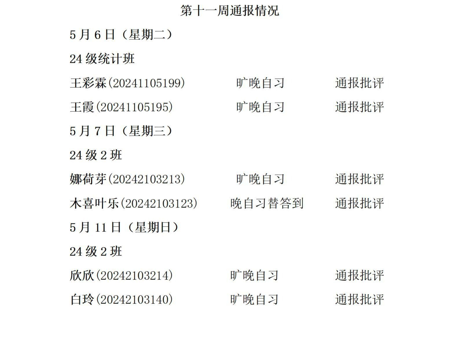 数学科学学院2024——2025年度第二学期第十一周通报情况