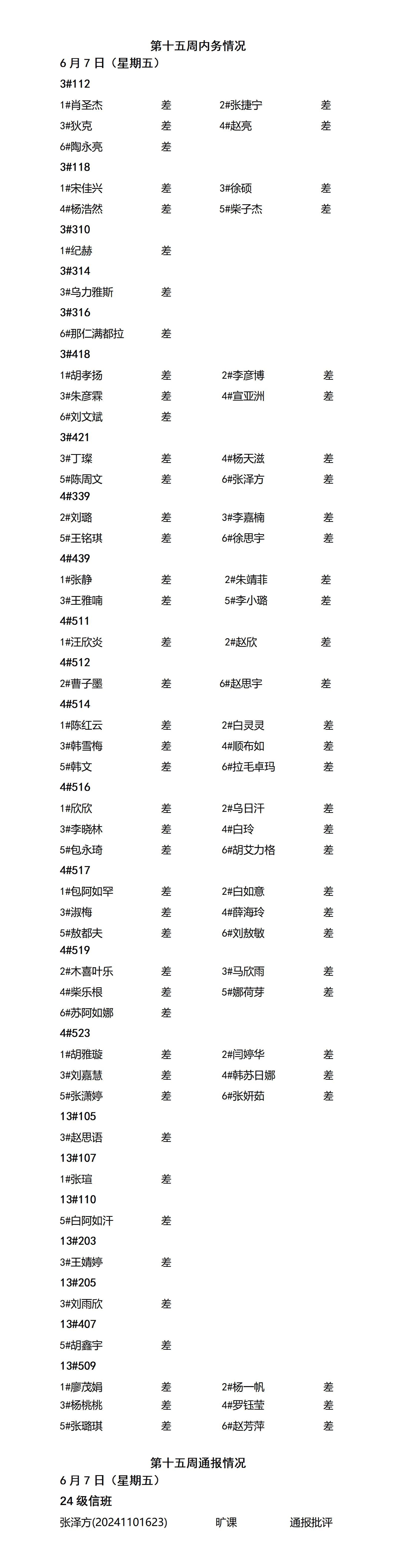 数学科学学院2024——2025年度第二学期第十五周通报情况