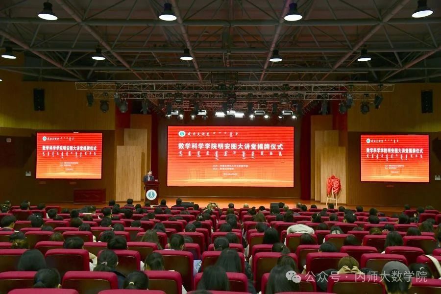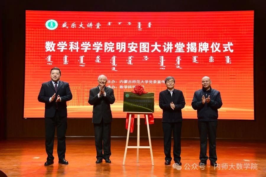 近日,由校党委宣传部主办、数学院承办的内蒙古师范大学盛乐大讲堂·数学科学学院明安图大讲堂揭牌仪式暨学术报告会在盛乐校区图书馆二楼报告厅举行。