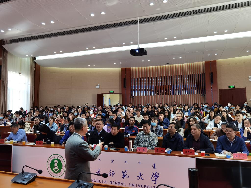 本次讲座由数学科学学院副院长包霞老师主持,数学科学学院党委书记、院长扎其劳教授、学科(教育)数学学位点负责人李春兰教授、科学技术史研究院代钦教授和内蒙古自治区教研室、呼和浩特市中学数学教研室成员、呼和浩特市中学数学教师及数学教育方向的研究生,共300多名师生聆听了报告。