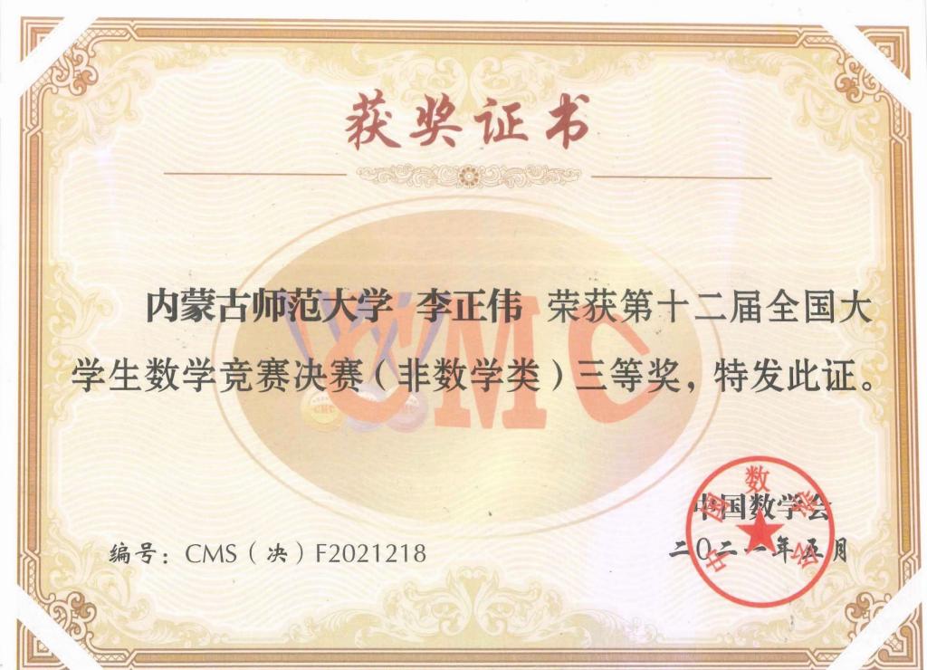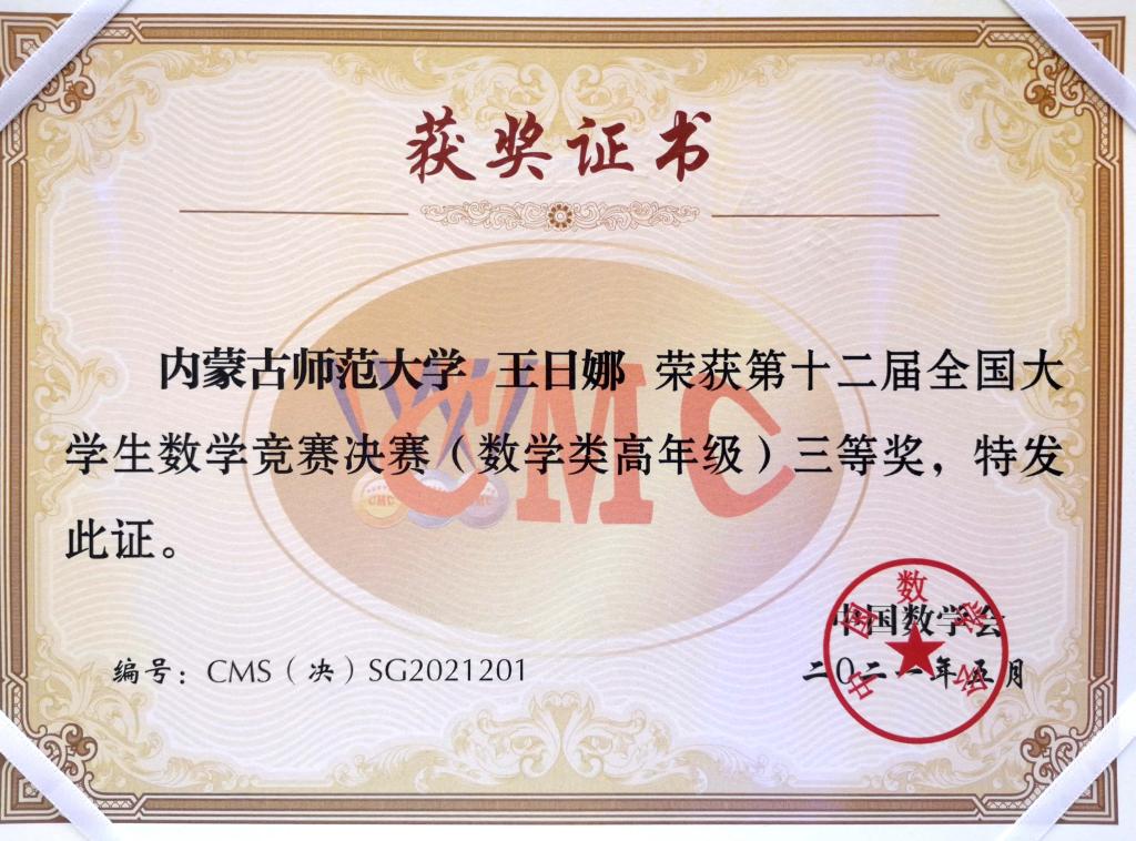2021年5月14-16日,第十二届全国大学生数学竞赛决赛在吉林大学成功举办。我校学子首次入围全国总决赛,取得了可喜的成绩。经过激励角逐,由数学科学学院耿俊老师指导的2018级王日娜同学获得了数学类高年级组全国三等奖、经济管理学院2019级李正伟同学获得了非数学类全国三等奖,实现了我校在该项赛事国奖零的突破。