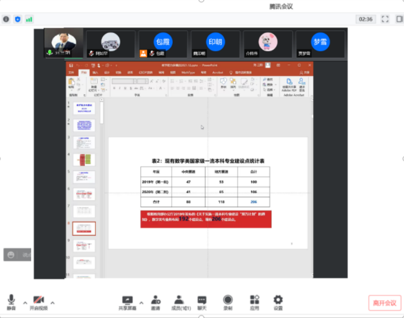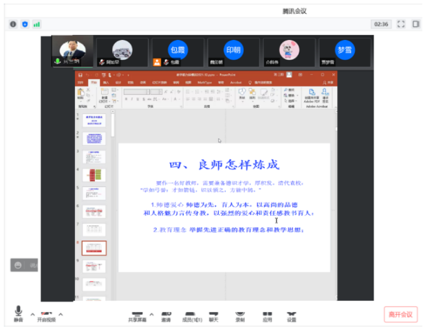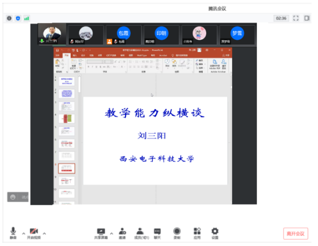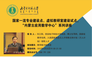 2022年4月20日19:00—21:00数学科学学院在线开展“国家一流专业建设、虚拟教研室建设、内蒙古应用数学中心”系列讲座。本次特邀请国家教学名师、西安电子科技大学刘三阳教授作主题为“教学能力纵横谈”的报告。报告由包霞副院长主持,院长扎其劳教授、党委书记李联和教授、副书记季建光老师及学院全体教师和慕名而来的其他院校部分教师聆听了本次报告。