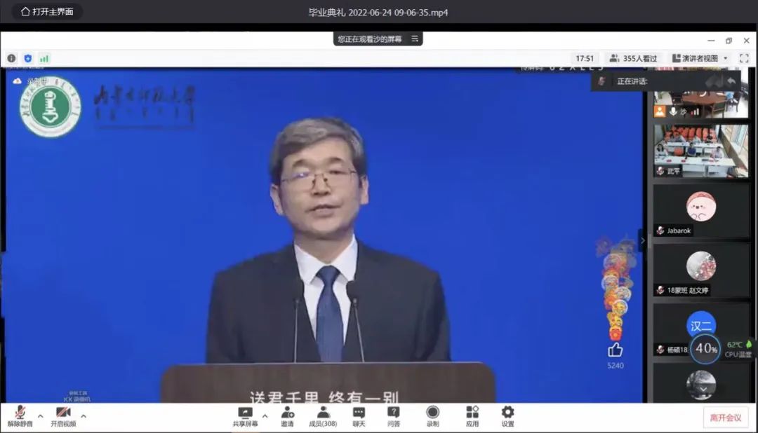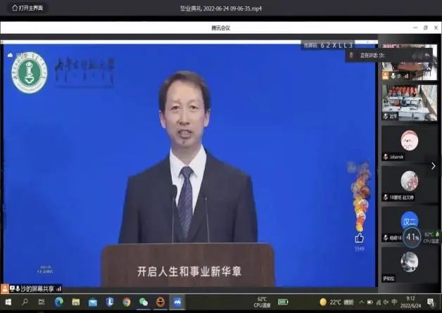 为进一步增强毕业生荣誉感、归属感,结合学校毕业生返校实际,数学科学学院于6月24日在线上隆重召开了2022届学生毕业典礼。学院领导、教师代表、学院行政老师、研究生导师、毕业班班主任以及2022届全体毕业生同聚线上、共话毕业、传递祝福。学院团总支书记皮建东主持毕业典礼。