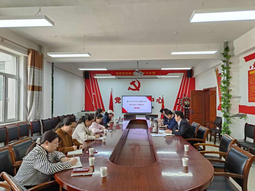 4月13日下午,数学科学学院在盛乐校区学院会议室召开2023届毕业生就业创业工作推进会,会议由学院党委副书记季建光主持,学院领导班子、辅导员、各系主任和毕业班班主任参加会议。