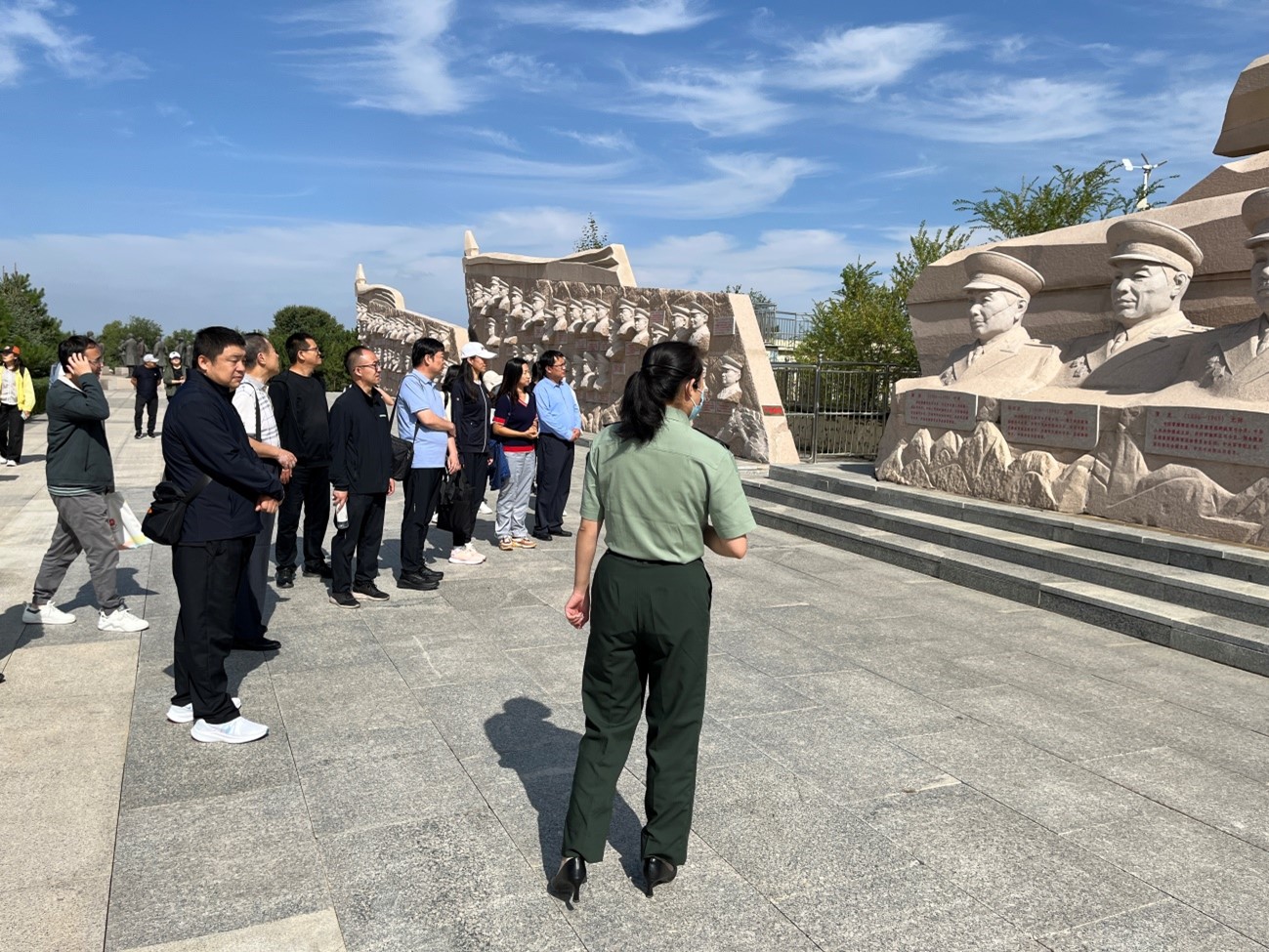为了深入学习党的二十大精神,传承红色革命精神,让全体教师接受一次生动的爱国主义教育,激发大家干事创业的热情,9月9日,我院组织全体教工赴集宁战役纪念园开展了“弘扬革命精神,凝聚奋进力量”主题党日活动。活动中,在讲解员的带领下,老师们集体参观了英烈墙、英雄广场、将军园、胜利广场和纪念碑,随后在战役纪念馆中通过认真听讲、实地参观和观看影片,详细了解了发生在乌兰察布市的集宁争夺战、大同-集宁战役和解放集宁战役三次较大规模战役中的光辉革命历史,深刻领悟了集宁战役的激烈和艰辛,真正接受了一次主题鲜明的革命历史传统教育。