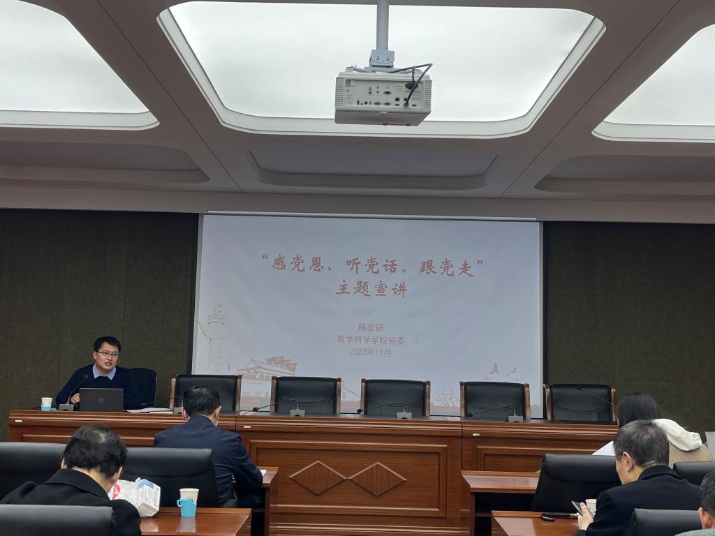12月14日下午,数学科学学院在赛罕校区文史类一号会议室举办“感党恩、听党话、跟党走”主题宣讲会,学院党委书记陈宏研面向学院全体教职工作了主题宣讲。