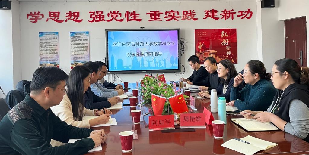 为推进2024年本科教育教学审核评估各项工作,1月11日下午数学科学学院院长扎其劳、副院长包霞、副院长萨和雅、各系主任和教学秘书赴内蒙古财经大学统计与数学学院调研,学习本科教育教学审核评估知识。内蒙古财经大学统计与数学学院院长王春枝、副院长陈利国、各系主任和教学秘书分享了本学院在整个本科审核评估工作中的经验,提出了宝贵的建议。