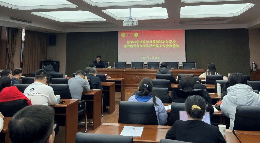 为深入贯彻落实学校华体会网页版2024年党的建设暨全面从严治党工作会议精神,切实履行全面从严治党工作责任,2月29日下午,数学科学学院在赛罕校区文史楼一号会议室召开了学习贯彻2024学校党的建设暨全面从严治党工作会议精神大会,学院全体教职工参加会议。会议由学院党委书记陈宏研主持。