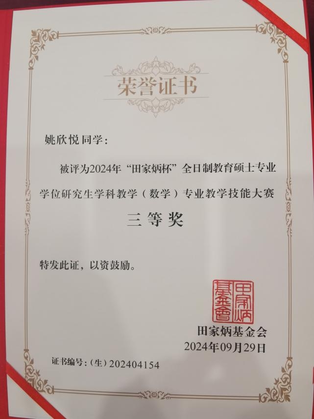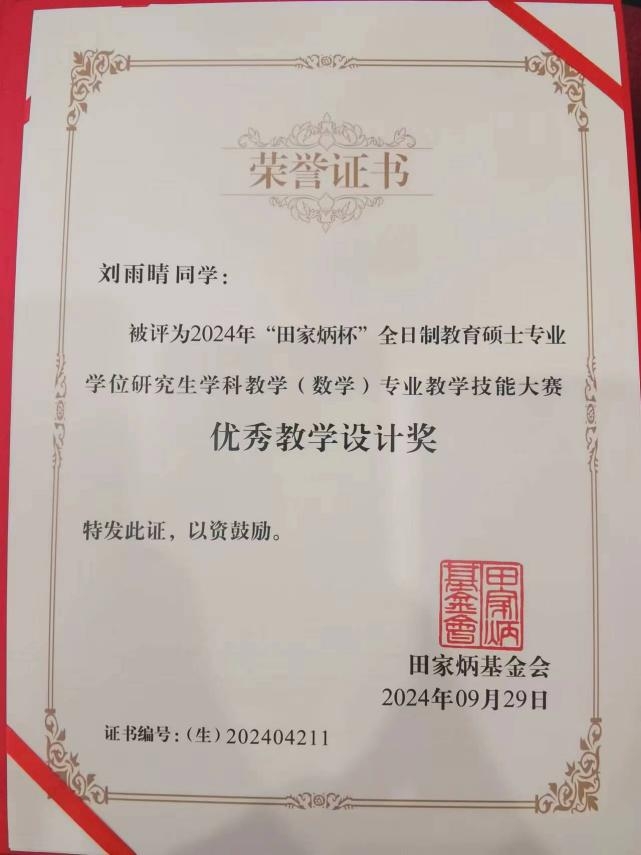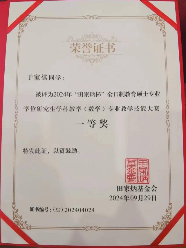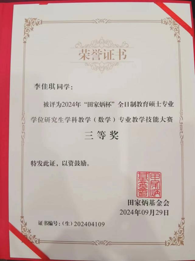 自6月8日开始,三位指导教师与参赛选手一起分析教科书内容、梳理教学设计思路、讨论研究教学创新点、模拟授课后评价修改精益求精备赛决赛。指导教师们倾囊相授,提出宝贵建议,参赛选手们不断突破、力争上游。经过9月28日一天紧张而激烈的角逐,我院2023级研究生于家祺同学荣获一等奖,李佳琪和姚欣悦同学分别荣获三等奖,刘雨晴同学荣获优秀教学设计奖,三位指导老师被评为优秀指导教师。