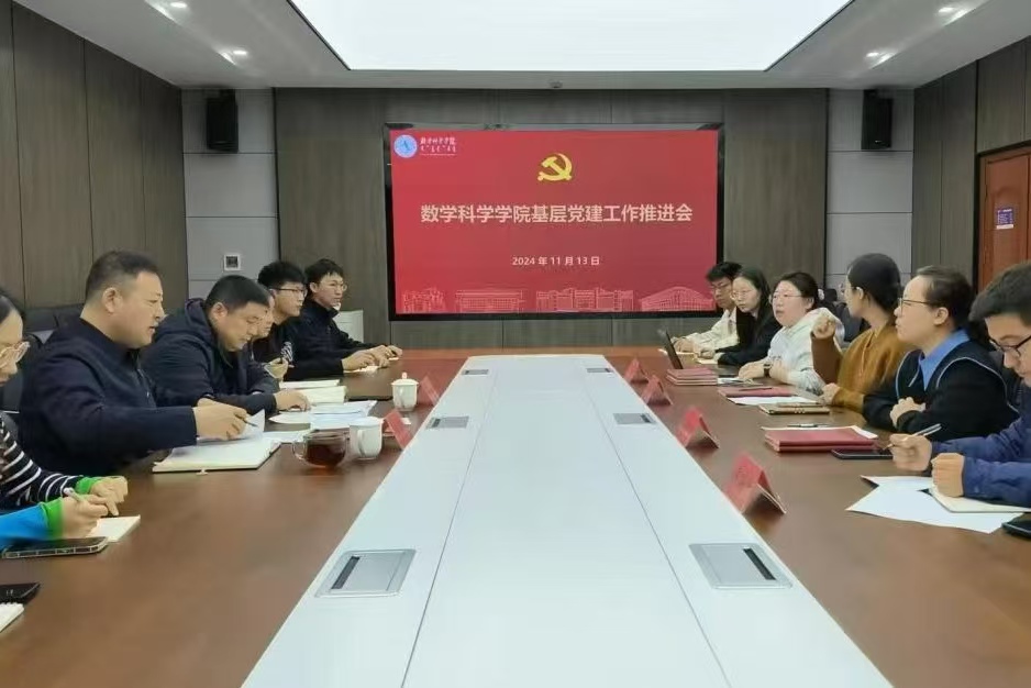 为了进一步推进学院基层党建工作,更好的发挥学生党支部的政治功能和组织功能,11月13日上午,数学科学学院召开基层党建工作推进会。学院党委书记张伟、党委副书记季建光出席会议,学院学生工作辅导员以及各学生党支部书记、支部委员参加会议。