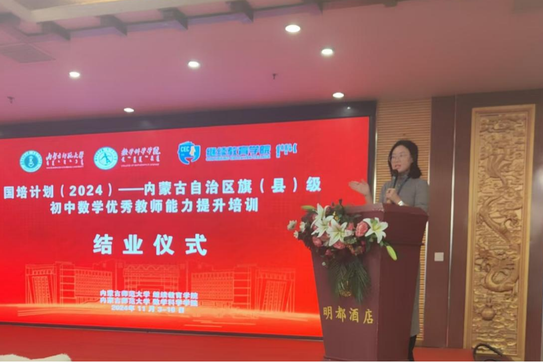 2024年11月15日,“国培计划(2024)——内蒙古自治区旗(县)级初中数学优秀教师能力提升”培训在山东省淄博市圆满落幕。本次培训由内蒙古师范大学继续教育学院主办、数学科学学院承办,学员是来自全区各盟市选派来的50位旗(县)级初中数学优秀教师,旨在为各盟市教科研质量的提高注入新动力。培训为期两周:在内蒙古师范大学集中研修1周,在山东省淄博高新区实验中学跟岗实践1周。培训班班主任及全体培训学员出席了结业仪式,仪式由郑佳璇老师主持。