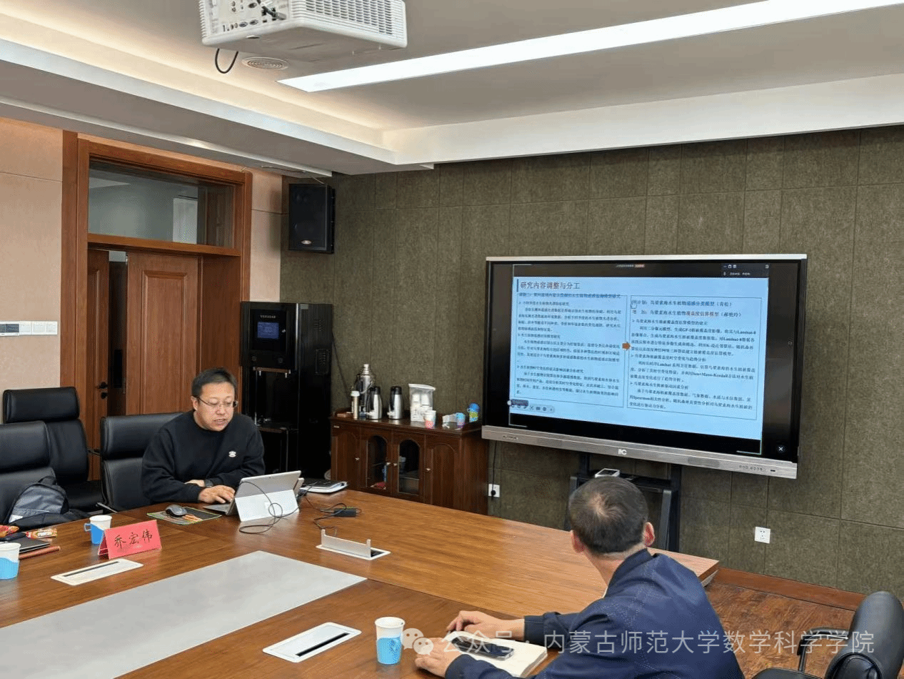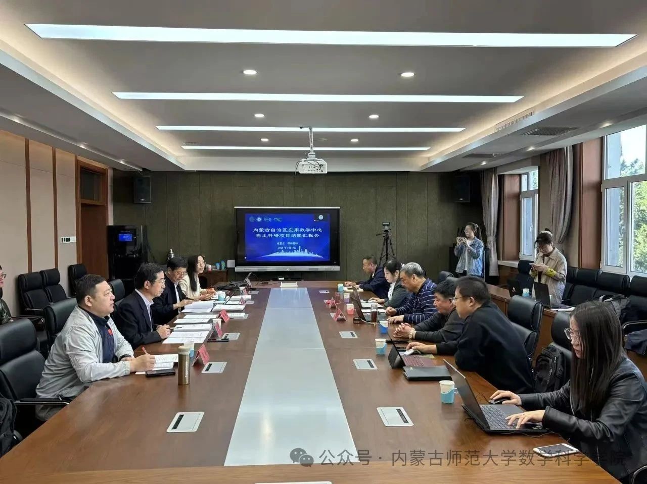 5月15日,第二批内蒙古自治区应用数学中心(以下简称中心)自主研究重点项目结题评审会与数学一流学科科研专项项目中期检查会议在赛罕校区顺利召开。中国石油大学(华东)、自然资源部第一海洋研究所张杰研究员,内蒙古师范大学科技处处长咏梅教授、研究生院原院长刘官厅教授、地理科学学院原院长包玉海教授及数学科学学院党委张伟书记、扎其劳院长、包霞副院长出席了本次会议。来自内蒙古大学、内蒙古工业大学、内蒙古财经大学的中心自主研究重点项目组成员及部分一流学科科研专项项目负责人参加了本次会议,会议由包霞副院长主持。