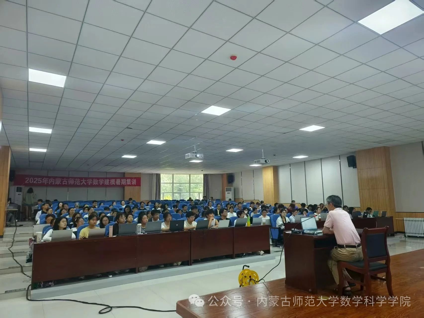 7月9日,开班仪式在学校学生事务中心举行。数学科学学院副院长萨和雅主持仪式,并对来自兄弟院校的师生表示热烈欢迎。他鼓励全体学员珍惜机会,积极投入,在集训中收获知识、增长才干。此次集训充分利用教育部虚拟教研室的优质师资力量和内蒙古应用数学中心在区域实际问题建模与特色研发方面的资源,为学生搭建了贴近产业需求的创新实践平台。活动吸引了包括内蒙古师范大学数学科学学院、物理与电子信息学院等院系学生,以及河套学院、集宁师范学院、呼伦贝尔学院、通辽职业学院等数学与应用数学专业教育部虚拟教研室共建单位和教育部师范教育协同提质计划首都师范大学组团成员高校的师生共同参与。