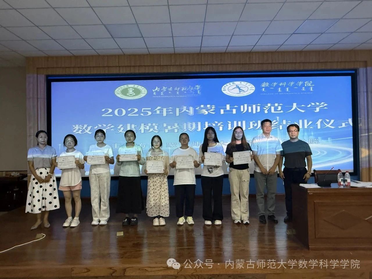 7月18日,结业仪式如期举行。数学科学学院副院长萨和雅主持仪式并作总结发言,他对全体学员在集训期间的辛勤付出和取得的进步给予了充分肯定,勉励大家将此次所学作为起点,在数学建模学习和实践创新的道路上继续坚定前行。仪式上,吉林财经大学木仁教授、我校萨和雅教授和陈阿茹娜老师共同为参训学员们颁发了结业证书。