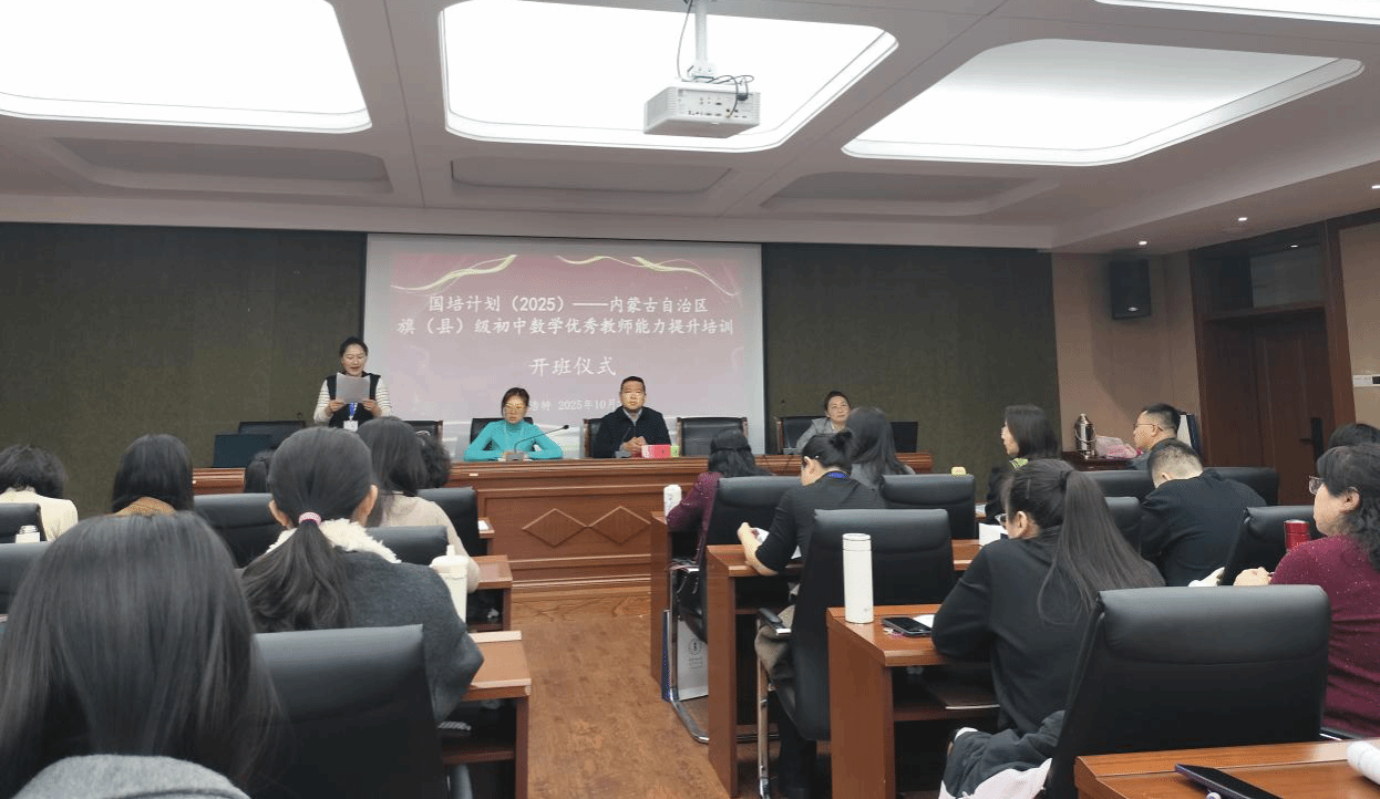 10月28日,由内蒙古师范大学继续教育学院主办、数学科学学院承办的2025年“国培计划”——内蒙古自治区旗(县)级中学优秀教师能力提升培训-初中数学培训班正式开班。数学科学学院党委书记张伟、数学科学学院教师及培训班班主任娜仁格日乐、楚鑫、郑佳璇以及培训班全体学员参加了开班仪式。会议由数学科学学院郑佳璇老师主持。