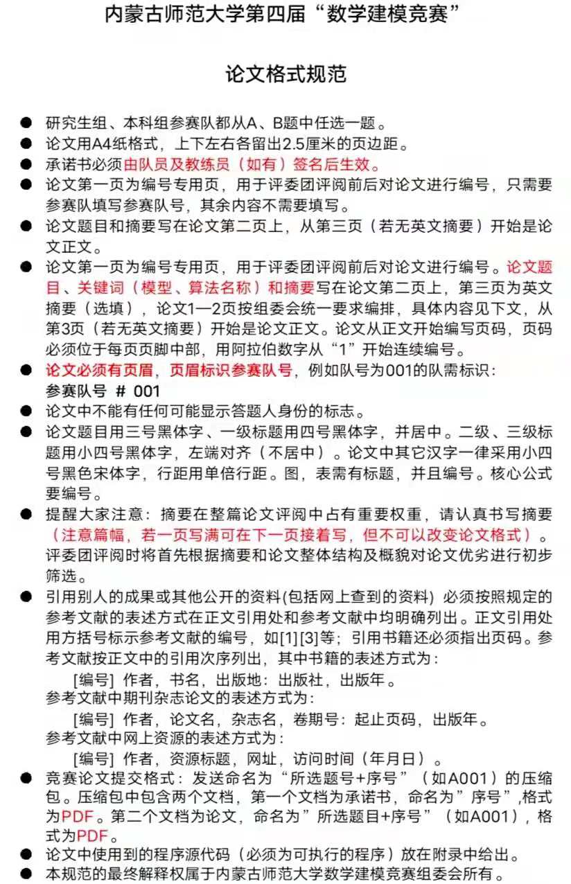 内蒙古师范大学第四届“数学建模竞赛”论文格式规范