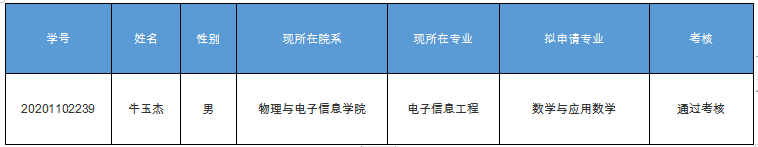 数学科学学院2022年拟接收退役大学生转专业学生名单公示