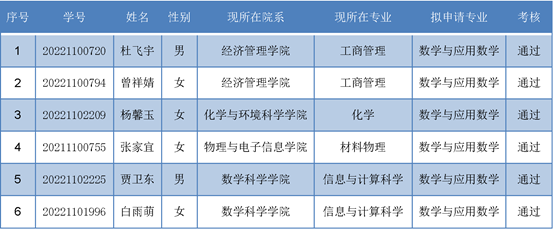 202359日,学院转专业工作组通过专业考试、综合面试,确定拟接收转专业学生名单如下: