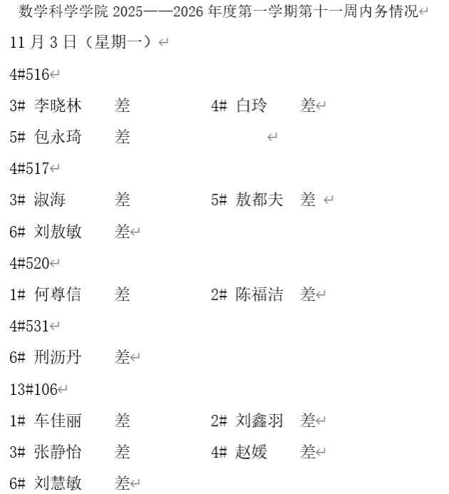 数学科学学院2025——2026年度第一学期第十一周内务情况